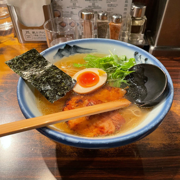 俺流塩ラーメンの神宮前店。 ラーメンとつけ麺があり、それぞれ清湯の塩と白湯の熟成塩がある。 大きな唐揚げも名物。