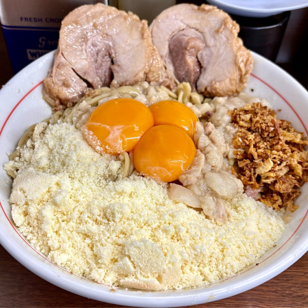 港区三田に本店がある「ラーメン二郎」の横浜店。二郎の中でも特に行列が長い店舗。二郎ならではのカネシ醤油が効いたガッツリ系ラーメンを提供。二郎では珍しい「汁なし」を提供している。
