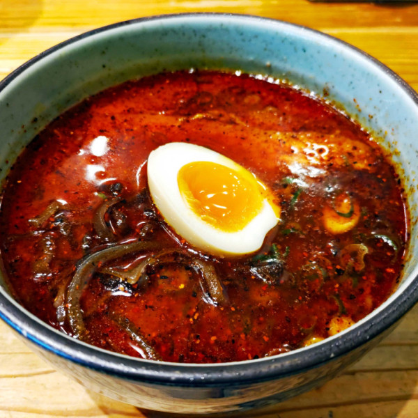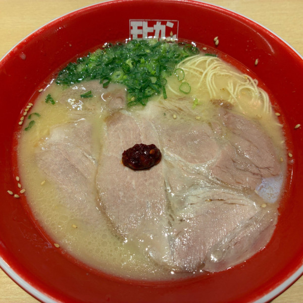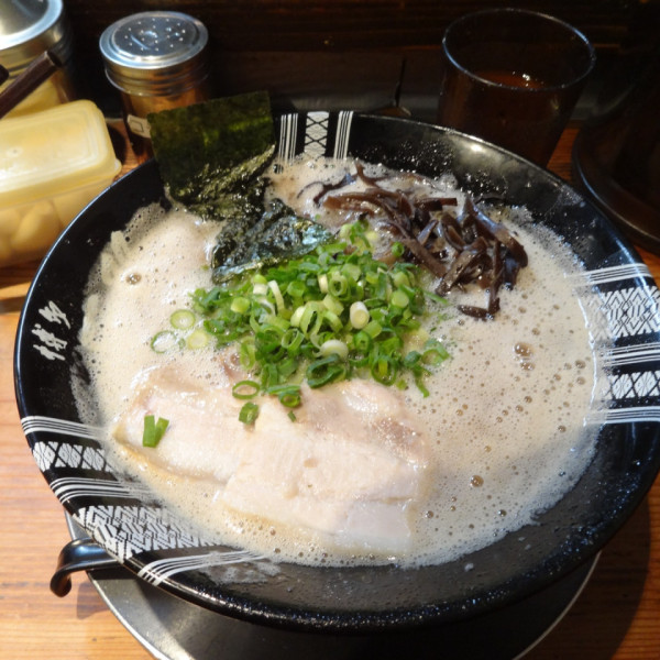 福岡県福岡市博多区博多駅東3-1-6マップで見るそれほどギトギトでもない、さらさらなスープで、ザ・豚骨!っていう感じがたまらない。麺もツルツルで風味も良い。思わず替玉!自分でクラッシュするニンニクとカラシ高菜に紅しょうがという味変ラインナップもたまらん。