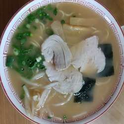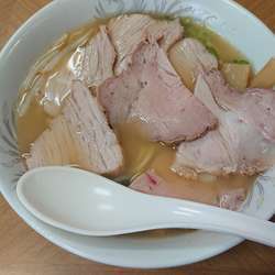 「肉小 600円」@松本中華そば店の写真バリエーション豊かな系統を持つ徳島中華そばのルーツともいわれる白系、その中でも昔ながらの雰囲気を強く持っているこちらのお店にやってきました。長い年月を耐えてきたであろうその佇まいに思わず圧倒されてしまいます。店内は、都会でもあまり見かけない程の、数席のみの小ささです。出前もやってるようで、時々電話がかかってきてました。注文は、肉入りとライスにします。