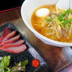 | メニュー | メニューの写真を見る ネギチャーシュー湯麺 1,100円(白い味玉入り) |