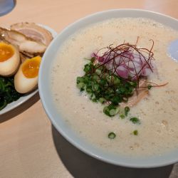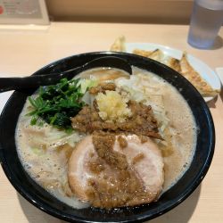 提供前にブレンダーで泡立てた泡系の鶏白湯ラーメン。