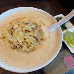 柔らかい口当たりの泡スープで熱を閉じ込めており、麺はスープとの絡み抜群で熱々🔥