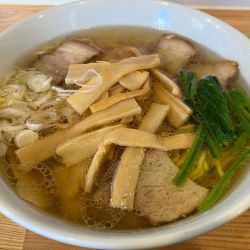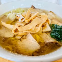 塩ダレの旨みを鶏出汁が支える黄金のスープ。