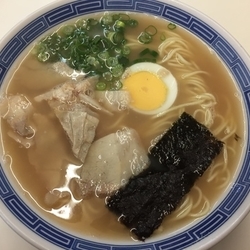 | 備考 | 明善高校の裏にある学生やサラリーマンに人気の食堂。1955年創業。 一日で使い切る常に新鮮なスープは吟味した国産豚骨を絶妙な火加減で煮込んで仕上げる。 「スープの味が薄くなる」との理由で開業以来替え玉なし。 ※2014年現在、焼きめしはやっていません。 2018年7/24訪問、ラーメン500円になってました。 |