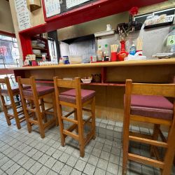 店内は年季の入った雑多な、今日現下に棚のある厨房向きカウンター6席(実質4席)と4人掛けテーブル席が3卓あり氷入りお水は出して頂きました(奥にお手洗いあり)。