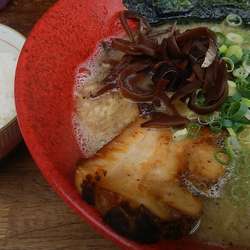 スープは背脂や刻みニンニク、茶色いのは焦がしねぎでしょうか、色々と混ぜてあります。白濁色の強い豚骨スープですが、出汁の旨... 続きを見る