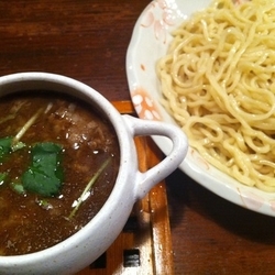 メニューが日替わりのお店。今回頂いたのは名前の通りつけ汁に牛スジが入ったつけ麺。食べ応えがあり、美味しかったです。