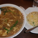 狙いはリーズナブルなセットメニューで、店頭のメニューを見て「酸辣湯麺」らしきセットに決定。