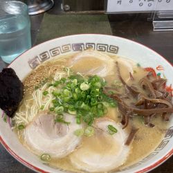 長女の大学受験を終え2年ぶりに家族旅行です。ゆっくりと寛ぎたいとのことで温泉で疲れをいやすことととなりました。湯布院、別府と温泉を満喫した最終日前夜に夕食を終え、一息ついた後にこちら~宿から少し歩いて到着。先客6人、後客4人。店員2人体制。カウンターに座り表記を口頭にてお願い。5分ほどで着ら~。熱めなスープはややブタクサな油も多めな豚骨。旨味も... 続きを見る