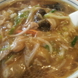 24分に着丼しました。餡掛けの中身はもやし、キクラゲ、白菜、キャベツ、細切りニンジン、ニラでした。