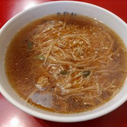 スタルジックな趣のある外観の【生駒軒・神田和泉町店】を訪問したところ、老舗の町中華だけあり多彩なメニューで悩みつつも、他の店で見たことのない≪エノキらーめん≫というメニューに目が止まり、どんな一品なのかの予想がつきにくくて興味が湧いたことから、こちらをチョイスしていただきました🍜