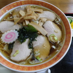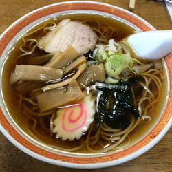 壁に貼ってあるメニューからラーメンを注文。家族経営の店で、店主の他に、店主の親御さんと御夫人と思わしき女性2人で切り盛り。注文後8分ほどで配膳されて着丼。