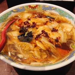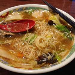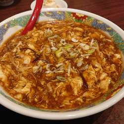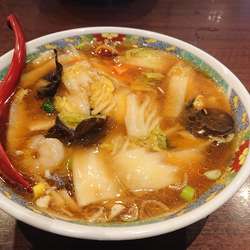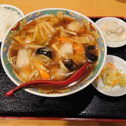 いつものスープにいつもの麺ですが、上の餡掛けが熱々で量も多く、ハフハフしながら頂きました。