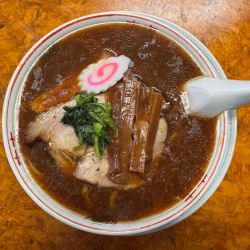 スープは見た目程濃くはなく、生姜がガツンとくる感じ。