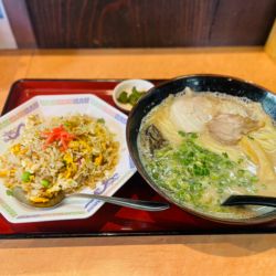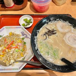 迷いなく掲題・焼き飯セット(+350円)を麺普通でお願いする。