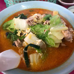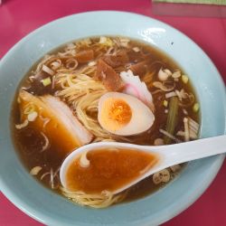 予想通りのオーセンティックな着丼、ガラと根菜なベーススープゎ薄らとした素材感、料理全般に使う事が前提でラーメン用に強化されてないですね。