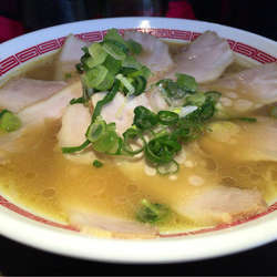 具は、もやし・チャーシュー3枚。薬味には、青ネギ。