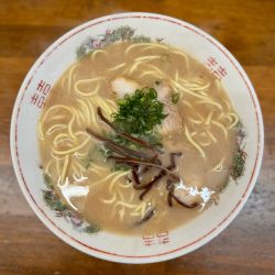 両サイドに豚骨を煮込む寸胴があるのが面白い。