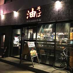 同僚と居酒屋で一杯やった後、〆に同僚が好きな油そばを食べに来た。