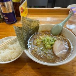 まずはスープ、少し生臭いがたっぷり煮干しでうまい。豚骨ベースかな?ドロドロまではいかないが灰色に濁った濃厚スープ。塩味は控えめで食べやすい。麺は中太、硬めでオーダー。チャーシューはバラで脂身多いタイプ。白髪ネギが大量にトッピングされている。このネ... 続きを見る