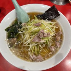 少し濃い目でオーダー。久々の訪問でしたがスープが中々良い出来に感じました。ネギも辛すぎず良い出来。ダブルでも良かったかな。周りの人はかいざんラーメンを頼む人が多かった。次回はかいざんラーメンだな。